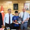 Prof. Dr. Yasım, öğrenciye bir de tablet hediye ederek başarılarının devamını diledi.
