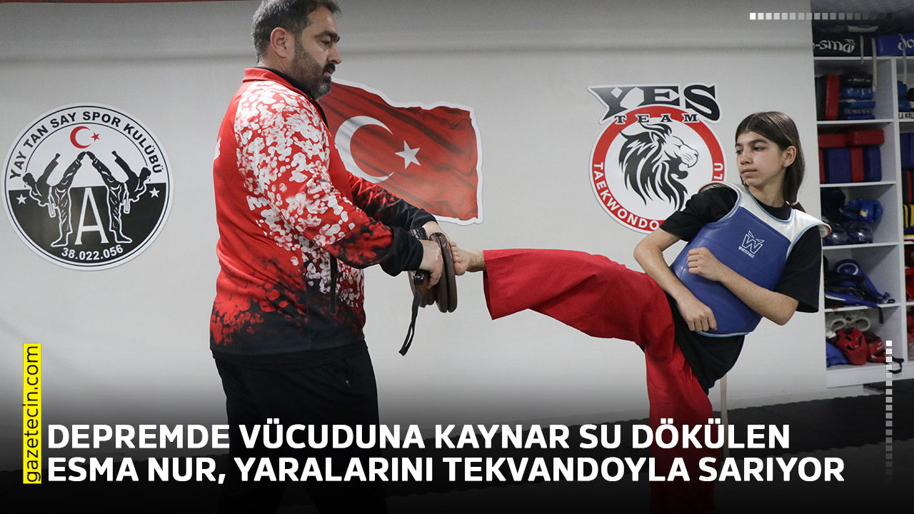 Üç katlı evin depremde yıkıldığını belirten Esma Nur, "Deprem olunca soba üzerime devrildi, kaynar su üstüme döküldü. Bacaklarım yandı. Sonrasında tedavi için Kayseri Şehir Hastanesine yönlendirdiler. Orada 3 ay tedavi oldum. Kayseri'de kuzenim tekvandoya geliyordu, ben de başladım. Yaşadığım travmaları tekvandoyla aştım. Türkiye üçüncüsü oldum. Hocalarıma teşekkür ediyorum." diye konuştu.