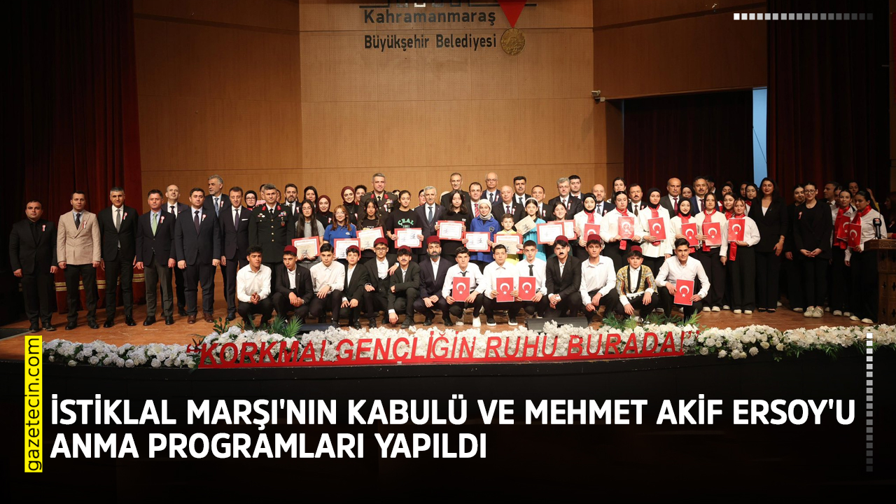 Kahramanmaraş'ta Mehmet Akif Ersoy Kültür Merkezi'nde düzenlenen program, saygı duruşunda bulunulması ve İstiklal Marşı'nın okunmasıyla başladı.