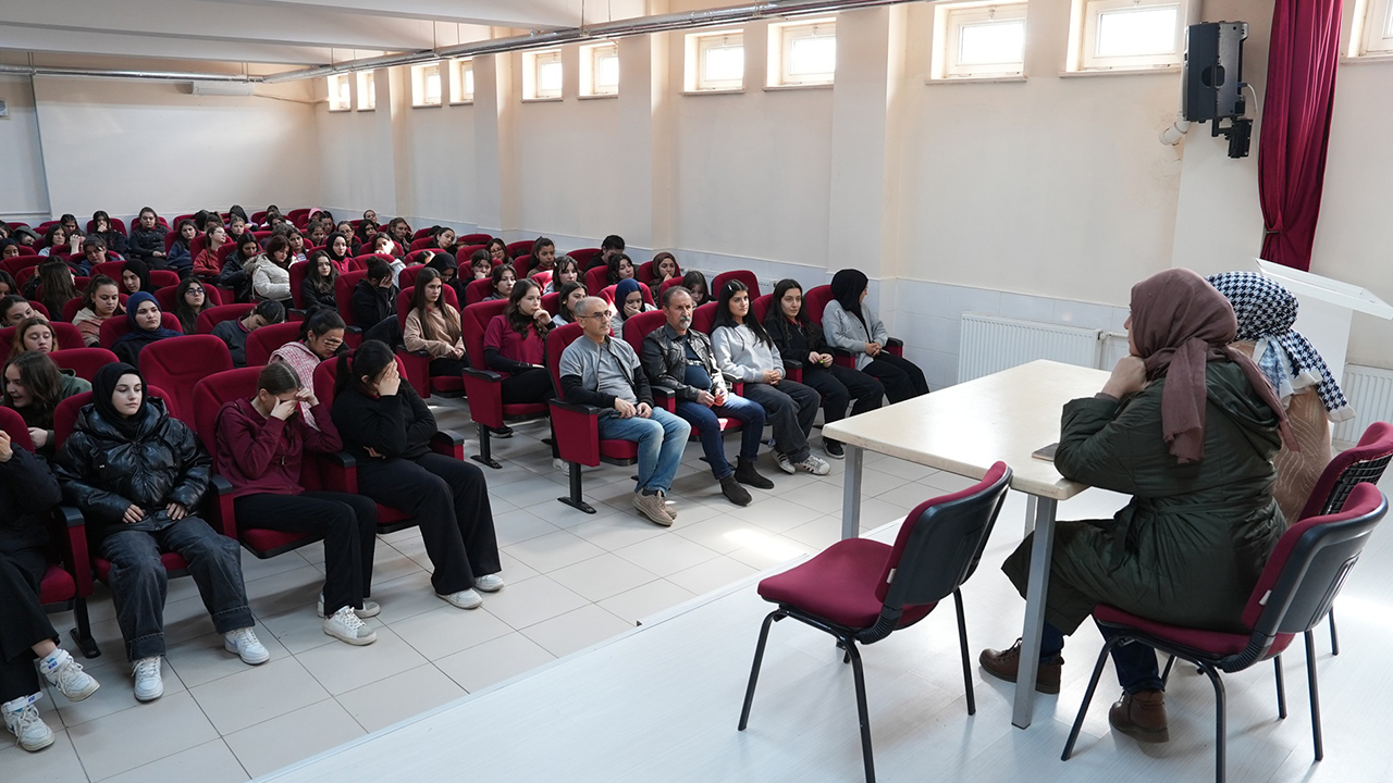 Çevre Koruma ve Sıfır Atık Dairesi Başkanlığına bağlı Sıfır Atık ve İklim Değişikliği Şube Müdürlüğü ekipleri, Mükrime Hatun Kız Mesleki ve Teknik Anadolu Lisesi’ni ziyaret ederek öğrencilerle bir araya geldi. Gerçekleştirilen programda çevre sorunları, sıfır atık uygulamaları ve iklim değişikliği konuları kapsamlı şekilde ele alındı.