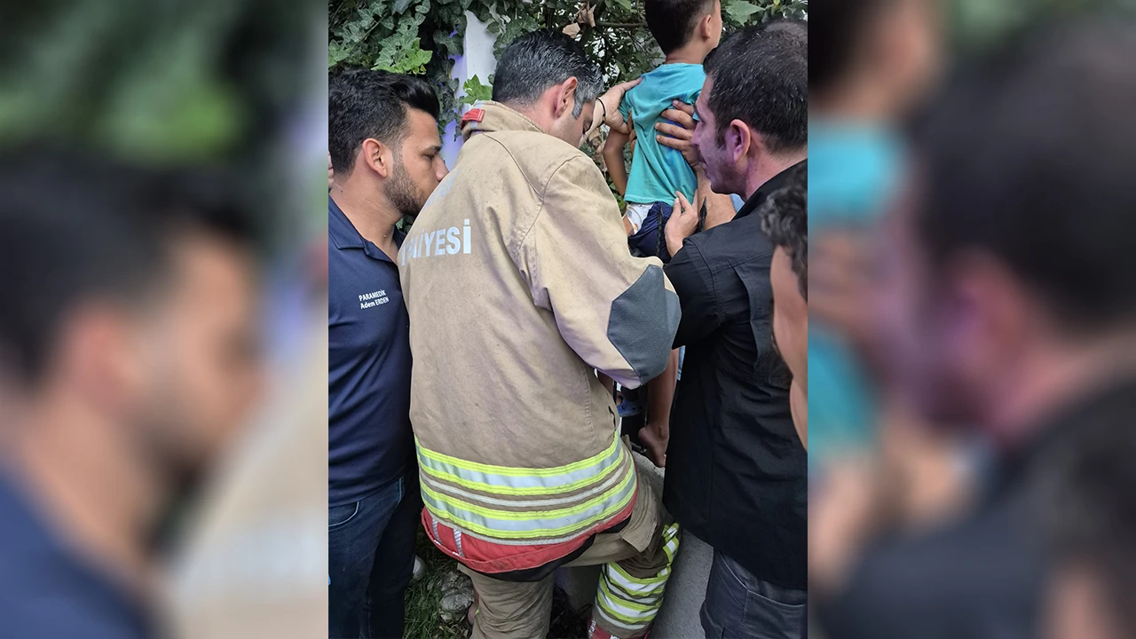 İtfaiye ekiplerince sıkıştığı yerden kurtarılan çocuk ambulansla hastaneye kaldırıldı.