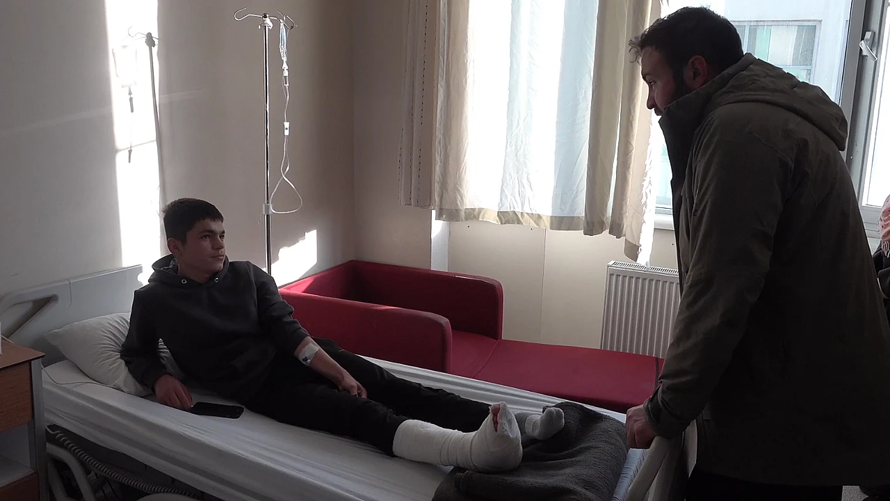 Karlı ve buzlu yolda düşme sonucu ayağı kırılan Eren Ergin (15) de düşme sonucu sağ ayağında kırık oluştuğunu ve ameliyat olacağını söyledi.