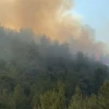 Yüksek ve eğimli bölgede etkili olan alevlere müdahale sürüyor.