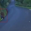 Görüntülerde, anne ve oğlunun yol kenarından yavaş yavaş yürüdüğü, annenin sırtında bir çanta olduğu görülüyor.