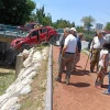 Araç, çekici yardımıyla bulunduğu yerden kurtarıldı.