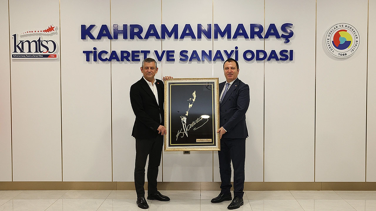 Cumhuriyet Halk Partisi (CHP) Genel Başkanı Özgür Özel, Kahramanmaraş programı kapsamında Ticaret ve Sanayi Odası'nı (KMTSO) ziyaret ederek, iş dünyası ve sivil toplum kuruluşu temsilcileriyle bir araya geldi. KMTSO Başkanı Buluntu, CHP Genel Başkanı Özgür Özel'e Atatürk işlemeli tablo hediye etti.