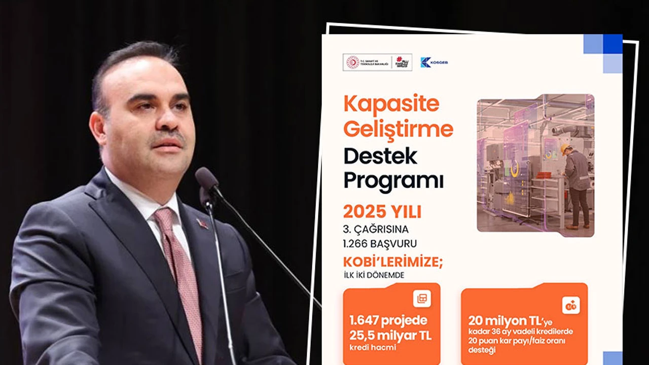 Bakan Kacır, sosyal medya hesabından yaptığı paylaşımda, KOSGEB Kapasite Geliştirme Destek Programı kapsamında işletmelere 20 milyon TL üst limitli, 36 ay taksitli kredi için 20 puanlık finansman desteği sunulduğunu kaydederek, “Bu yılın 3. çağrısına bin 266 işletmemiz başvuru yaptı. Yılın ilk iki döneminde bin 647 projede 25,5 milyar TL finansman hacmi oluşturduk” ifadelerini kullandı.