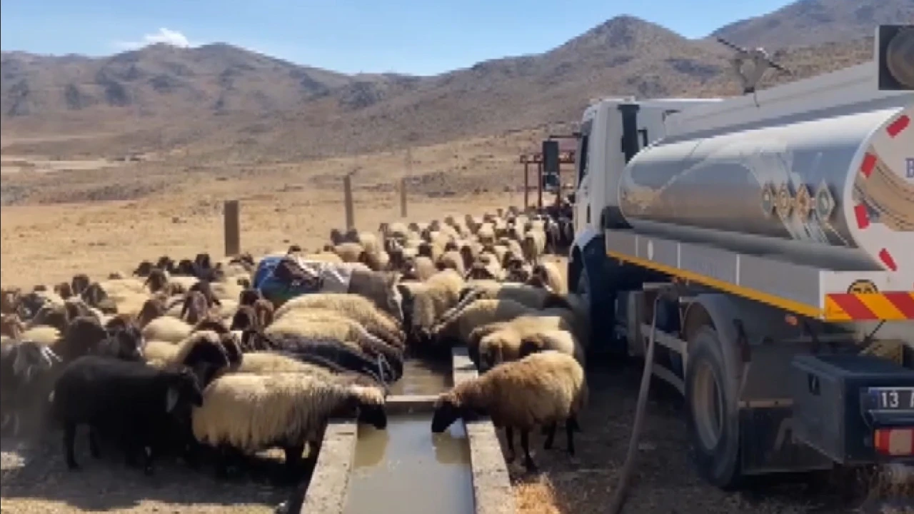 Bitlis'in Hizan ilçesinde kuraklık nedeniyle susuz kalan küçükbaş hayvan sürülerinin bulunduğu bölgeye, belediye ekipleri tarafından tankerle su taşındı.