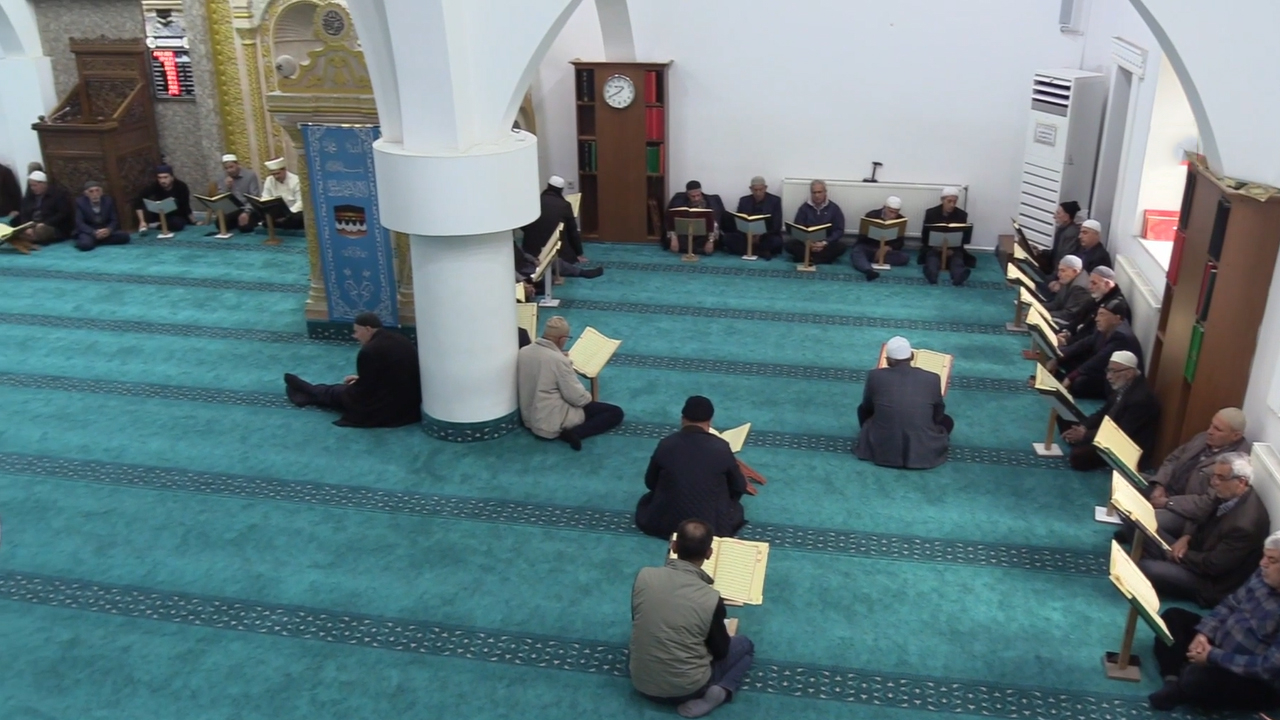Ramazan ayının feyzinden yararlanmak isteyen vatandaşlar, dini vecibelerini yerine getirdikten sonra mukabeleye iştirak ediyor.