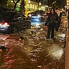 Su birikintileri ve sel nedeniyle sürücü ve vatandaşlar yol ile kaldırımlarda ilerlemekte zorlanırken, esnaf ise işletmelerine giren suları tahliye etmeye çalıştı.