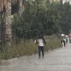 Bazı kent sakinleri, yağıştan korunmak için otobüs durakları ve iş yerlerinin tentelerinin altına sığınırken bazıları da kıyafetleriyle yağıştan korunmaya çalıştı.