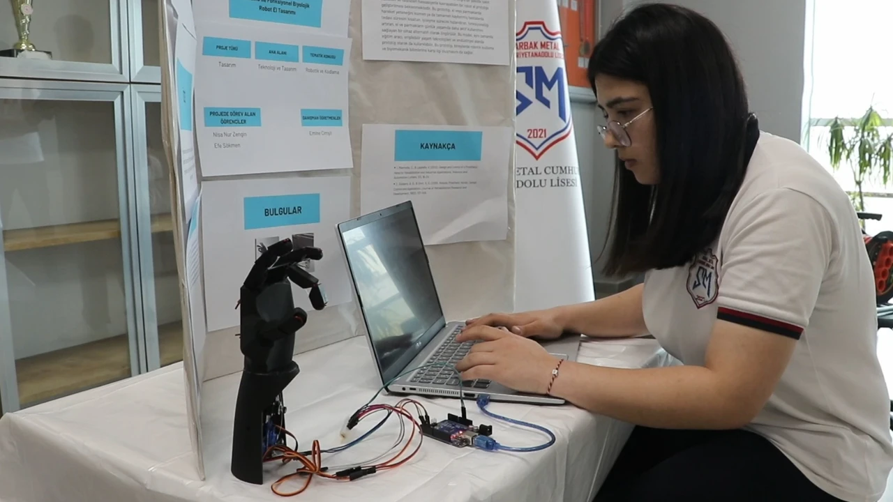 Öğrencilerden Efe Sökmen de tasarladıkları elin verilen komutlar doğrultusunda istenilen hareketleri yapabildiğini kaydetti.