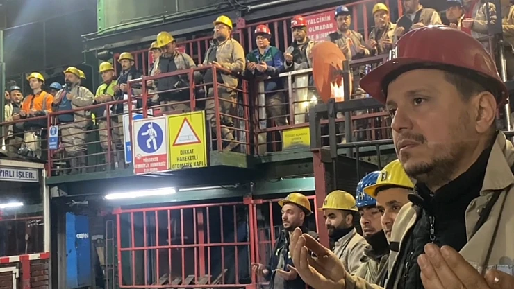 Zonguldak'ta maden işçileri, Kahramanmaraş merkezli 6 Şubat 2023'te yaşanan depremlerde yaşamını yitirenleri dualarla andı.
