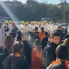 TTK Genel Müdürlüğünce hazırlanan programda, madenci elbiseleri ve baretleriyle Karadon Mahallesi'ndeki Ziya Gökalp Ortaokuluna gelen 54 işçiyi, çocukları alkışlarla karşıladı.