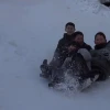 Kastamonu'nun Azdavay ilçesinde çoğunluğu ilkokul ve ortaokul çağında olan çocuklar, mahalle arasına yaptıkları kızak pistinde naylonlarla kayarak karın tadını çıkardı.
