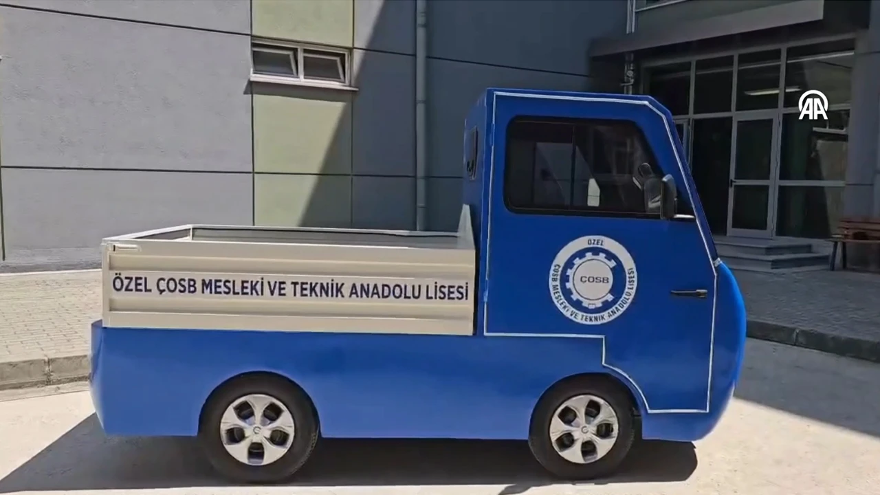 Tekirdağ'da Özel Çerkezköy Organize Sanayi Bölgesi (ÇOSB) Mesleki ve Teknik Anadolu Lisesi öğrencileri, öğretmenleriyle 'elektrikli kamyonet' geliştirdi. Okulun atölyesinde tamamen yerli imkanlarla tasarlanan 430 kilogram ağırlığındaki kamyonet, tek şarjla 100 ila 120 kilometre menzil kat edebiliyor.