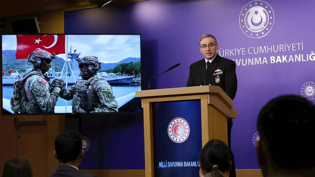 MSB Basın ve Halkla İlişkiler Müşaviri ve Bakanlık Sözcüsü Tuğamiral Zeki Aktürk, bakanlıkta düzenlenen haftalık basın bilgilendirme toplantısında konuştu.