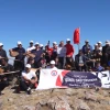 Yaklaşık 1 saatlik yürüyüşün ardından zirveye ulaşanlar, Türk bayrağının hemen yanı başında 40 sazı aynı anda çalarak Ertaş'ın "Gönül Dağı" ile farklı türkülerini seslendirdi.