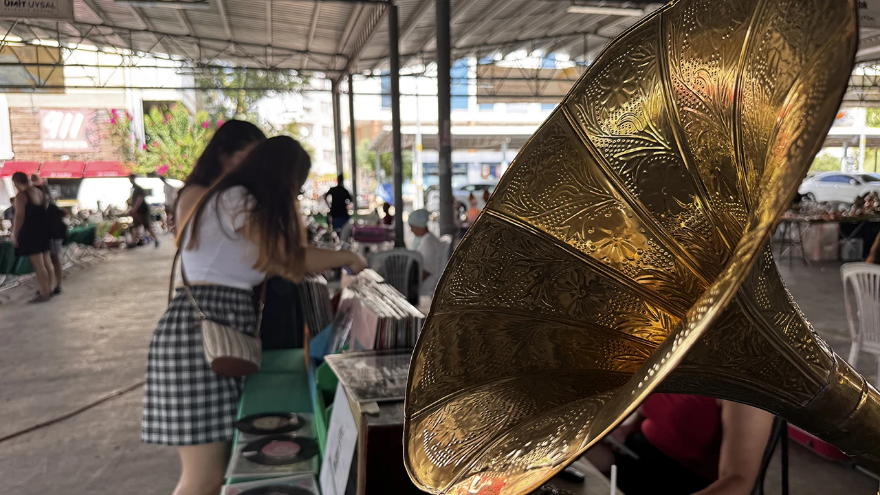Antika tutkunları koleksiyonlarına yeni ürünler kazandırırken, ziyaretçiler taş plakta çalan gramofonlardan yükselen müzikle eski eşyalar arasında geçmişe yolculuk yapıyor.