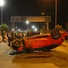 Sürücüsü henüz öğrenilemeyen 38 RS 018 plakalı otomobil, Prof. Dr. Muammer Aksoy Caddesi'nde, kaldırımda yürüyenlere çarparak devrildi.
