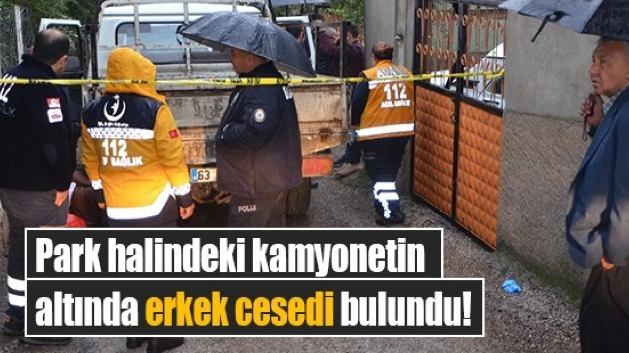 Adana'nın Kozan ilçesinde park halindeki kamyonetin altında erkek cesedi bulundu.