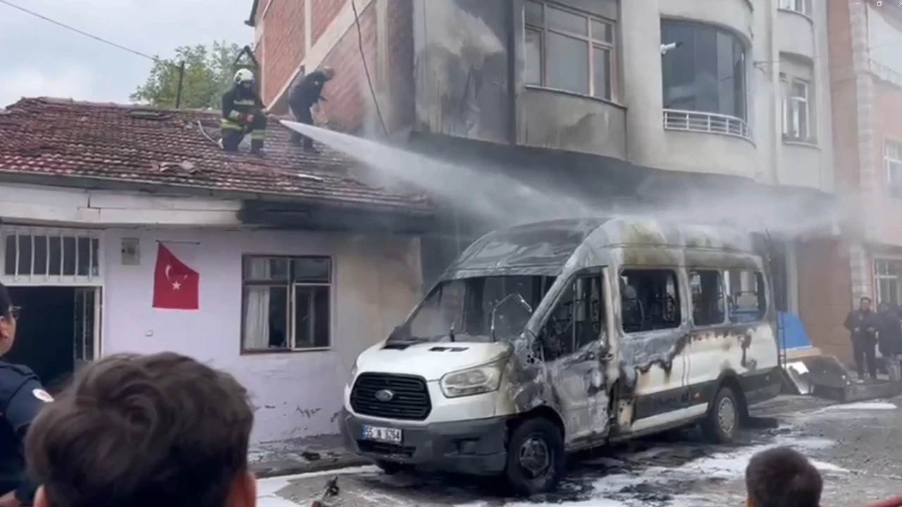 Minibüsün kullanılamaz hale geldiği yangında ev ve iş yerinde de hasar oluştu.