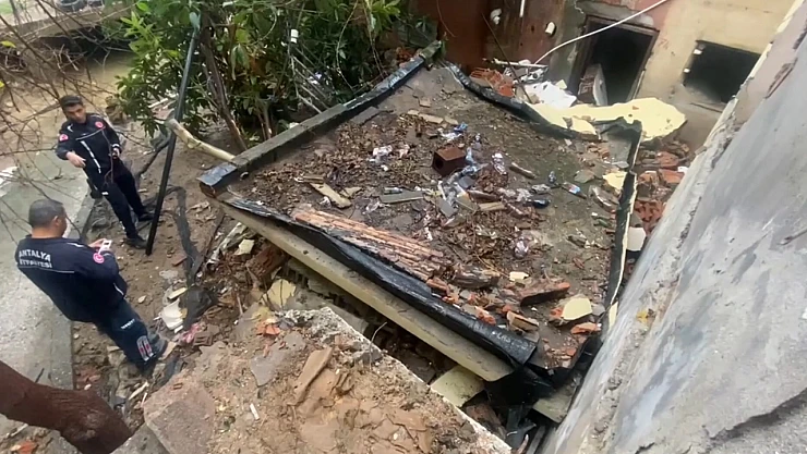 Antalya'nın Serik ilçesinde etkili olan sağanak nedeniyle uzun süredir kullanılmayan tek katlı bina çöktü.