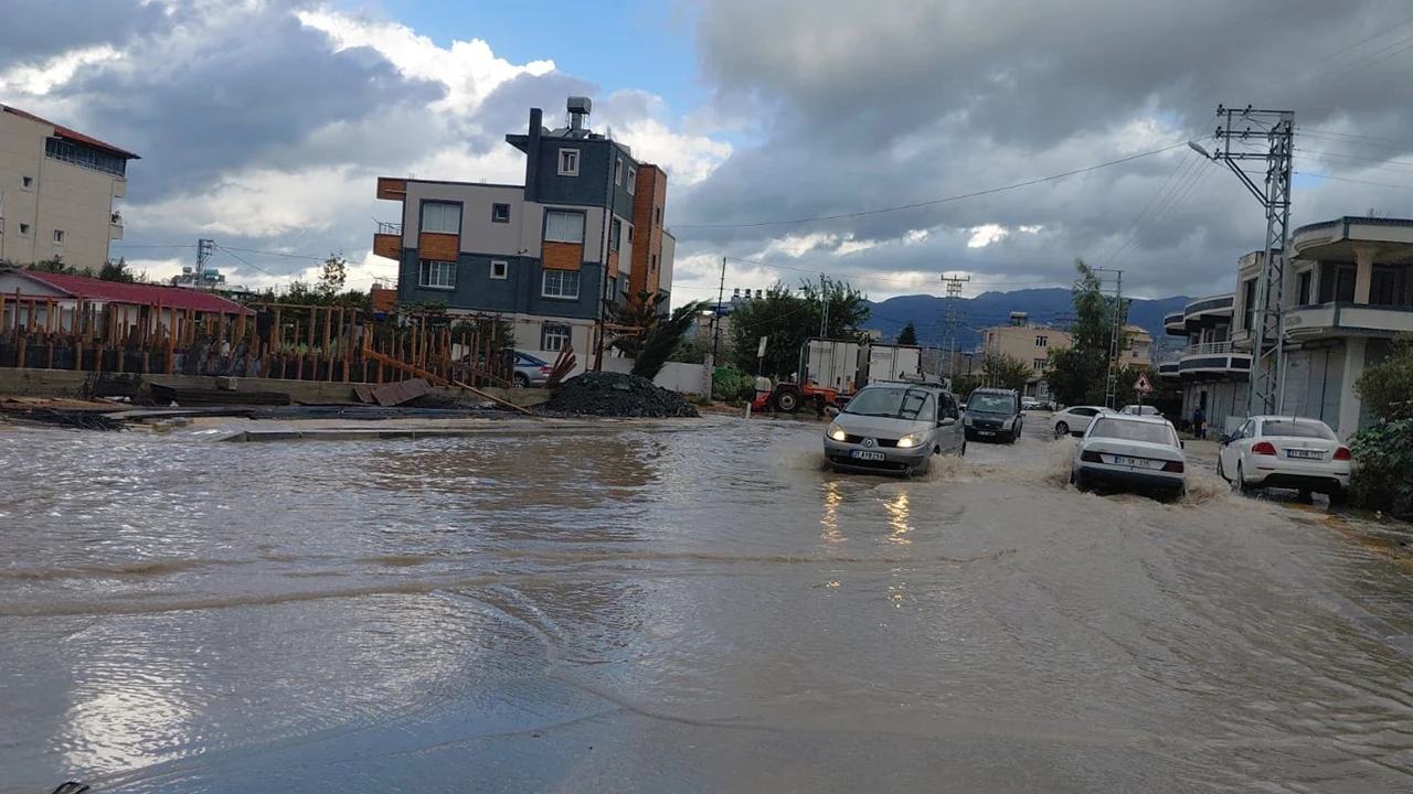 Hatay'ın Samandağ ilçesinde etkili olan sağanak ve şiddetli rüzgar nedeniyle sahildeki bazı karavanlar devrildi, caddelerde su birikintileri oluştu.