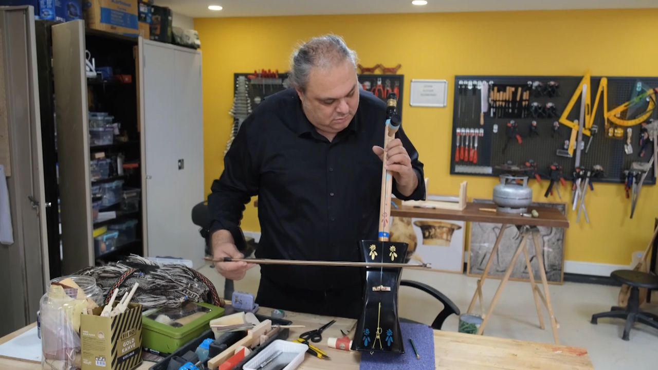 Yaptığı enstrümanlarda geçmiş medeniyetlerin izleri olduğunu vurgulayan Kaya, atık tenekeyi dönüştürerek rebap çalgısını ürettiğini kaydetti.