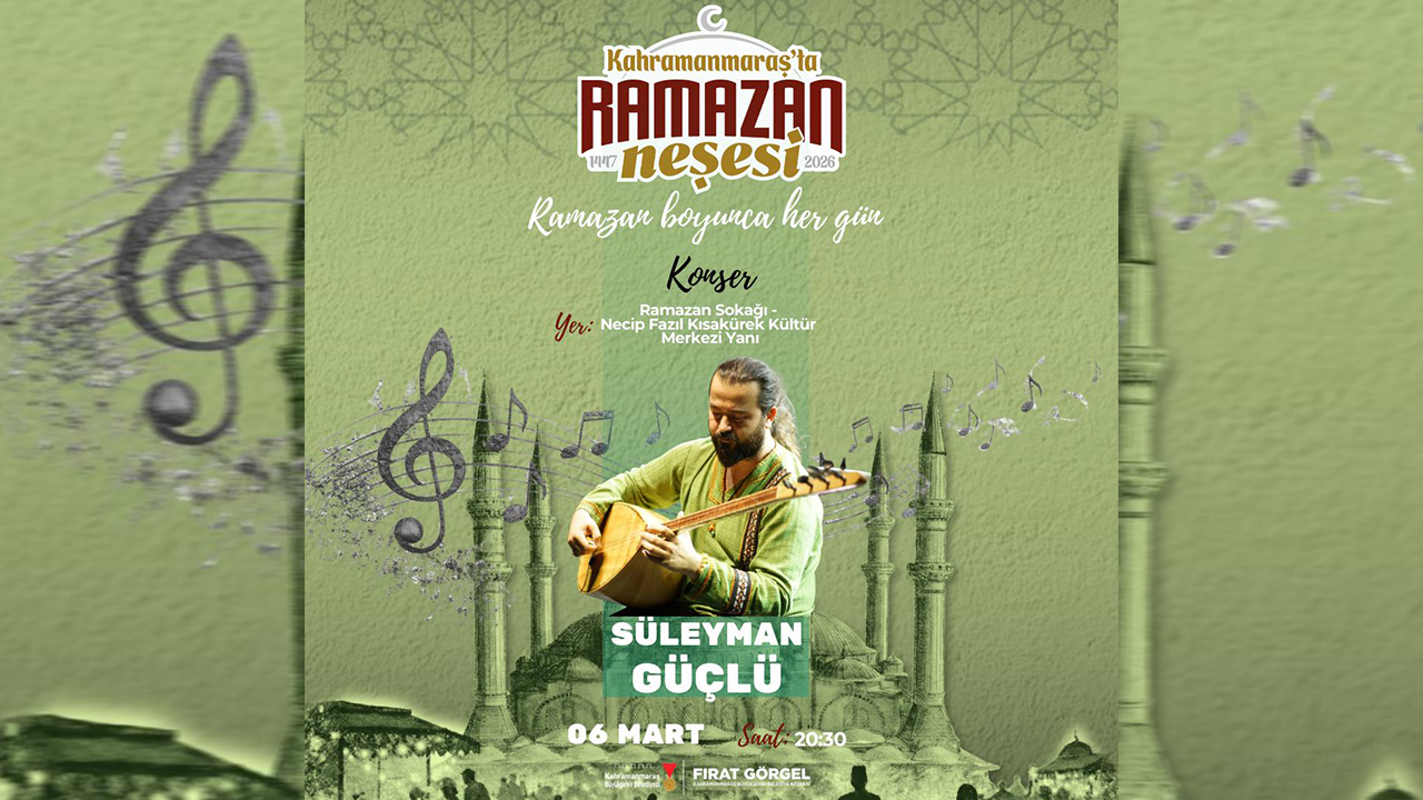 Kahramanmaraş Büyükşehir Belediyesi, Ramazan ayının manevi iklimini şehrin dört bir yanında hissettirmeye devam ederken, kültür ve sanat etkinliklerini de hız kesmeden sürdürüyor. Bu kapsamda Ramazan Sokağı’nda gerçekleştirilecek konserde katılımcılara unutulmaz bir akşam yaşatılacak.