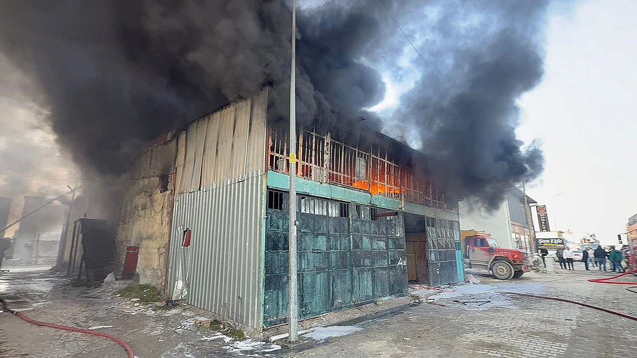 Hasar oluşan atölyelerde soğutma çalışması devam ediyor.