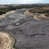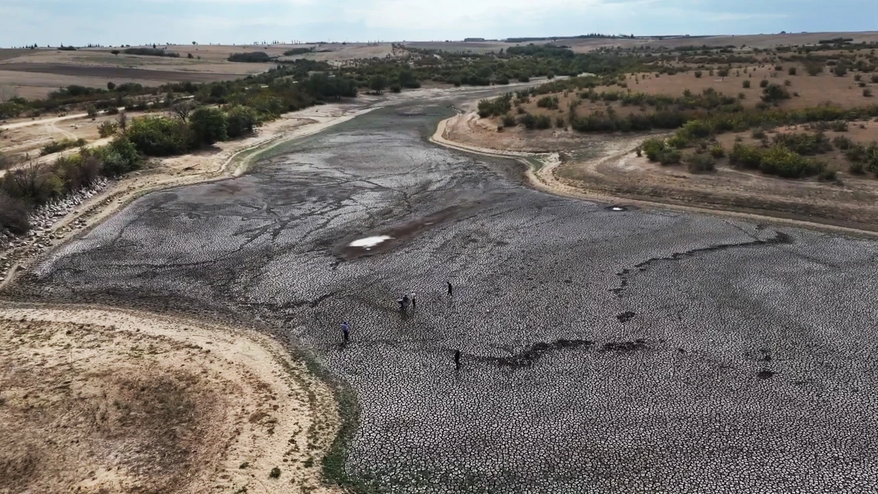 Edirne'nin Havsa ilçesine bağlı Şerbettar köyündeki gölet, kuraklık ve aşırı sıcaklara bağlı yaşanan buharlaşma nedeniyle tamamen kurudu.