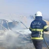 Aracı yol kenarında durduran sürücünün ihbarı üzerine olay yerine itfaiye ekibi sevk edildi.