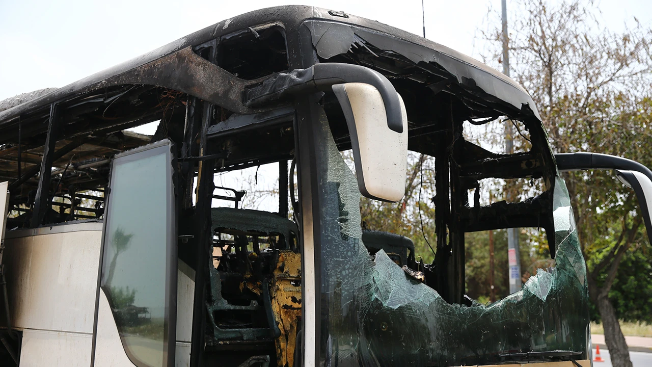 Seyir halindeki yolcu otobüsü yanarak küle dündü