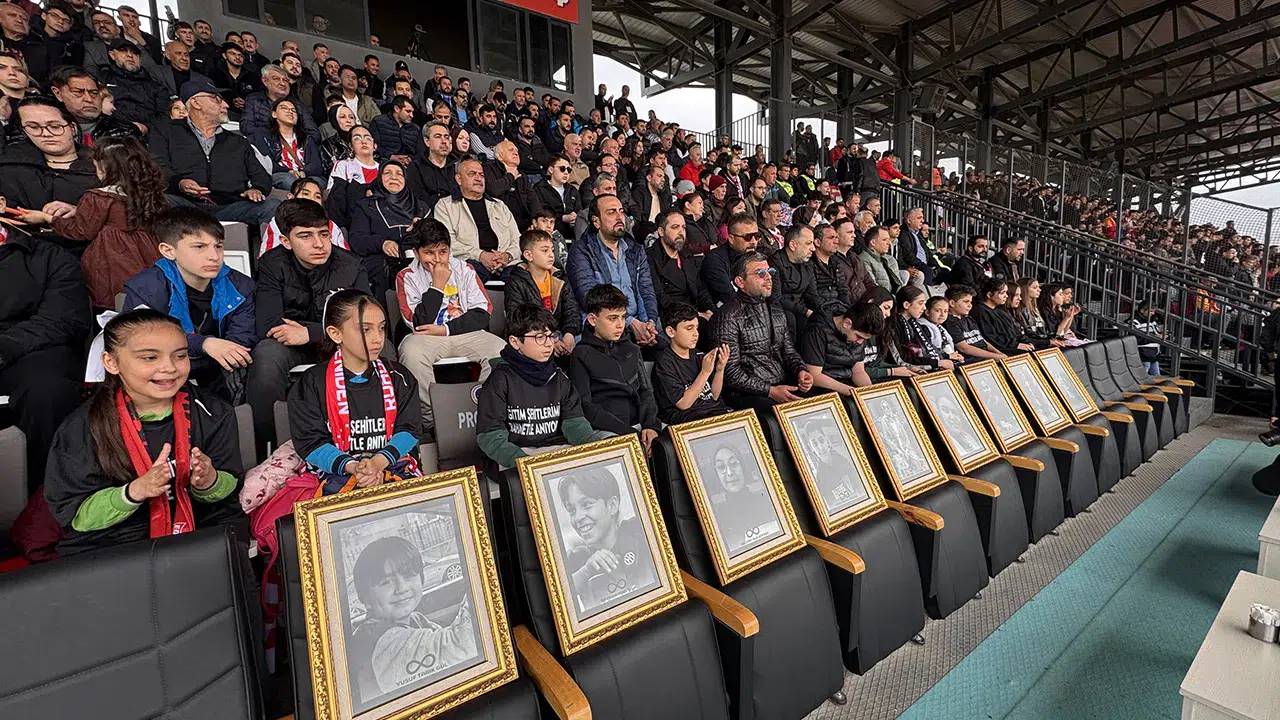 Futbolcuların, "Acımız büyük, başımız sağ olsun" yazılı pankartla sahaya çıktığı karşılaşma, saygı duruşu ve İstiklal Marşı'nın okunmasının ardından başladı.