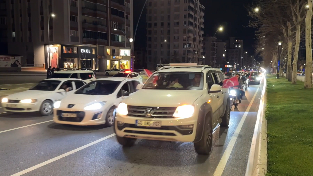 Vatandaşlar, hakemin bitiş düdüğüyle Türkiye'nin Dünya Kupası'na katılma hakkı elde etmesini Alparslan Türkeş Bulvarı'nda konvoy oluşturarak kutladı.