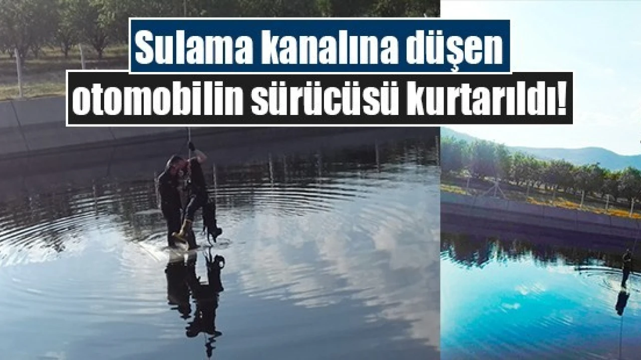 Kahramanmaraş'ta sulama kanalına düşen otomobilin sürücüsü, çıktığı aracın üzerinden itfaiye ekiplerince kurtarıldı.