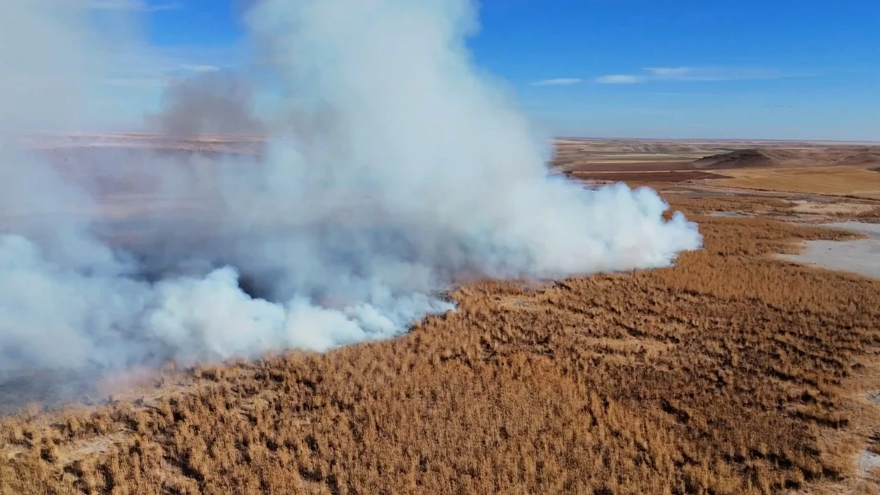 Konya'nın Kulu ilçesinde 'kuş cenneti' olarak da bilinen ve geçen yıl tamamen kuruyan Gökgöl'deki sazlıklar 2 gündür aralıksız yanıyor.
