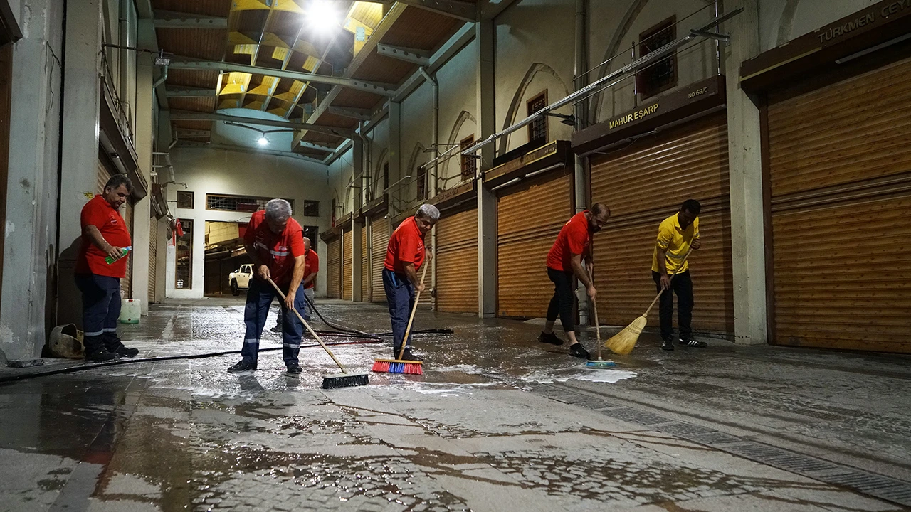 Büyükşehir Belediyesi, Tarihi Kapalı Çarşı'da geniş çaplı bir temizlik çalışması gerçekleştirdi. Çarşıda köpüklü su ve basınçlı yıkama sistemleri kullanılarak dükkân cepheleri, taş döşemeler ve tüm ortak alanlar ekiplerce derinlemesine temizlendi.