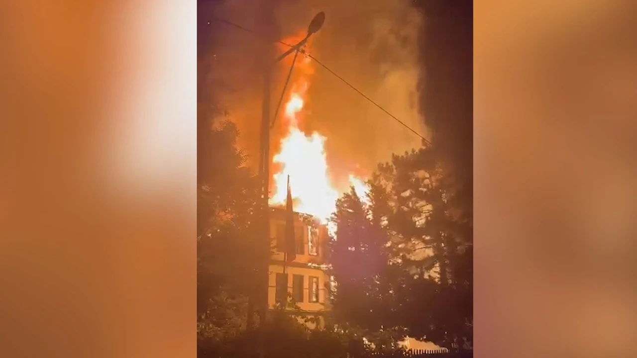 Ekiplerin çalışmasıyla söndürülen yangında tarihi konak kullanılamaz hale geldi.
