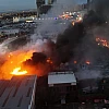 İstanbul Büyükçekmece'de, bir tarım şirketinin deposuna ait açık alanında palet ve plastik kasalarda çıkan yangına itfaiye ekipleri müdahale ediyor.