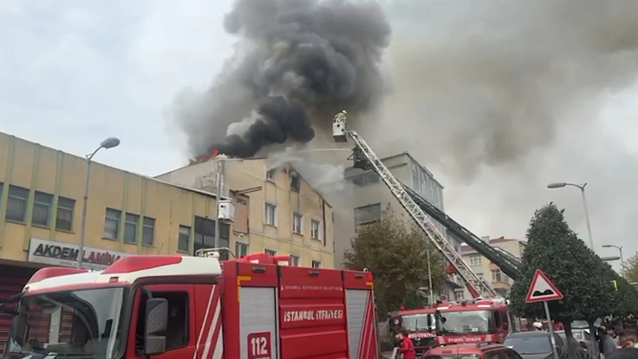 Güngören'de 3 katlı tekstil fabrikasında çıkan yangına itfaiye ekipleri müdahale ediyor.