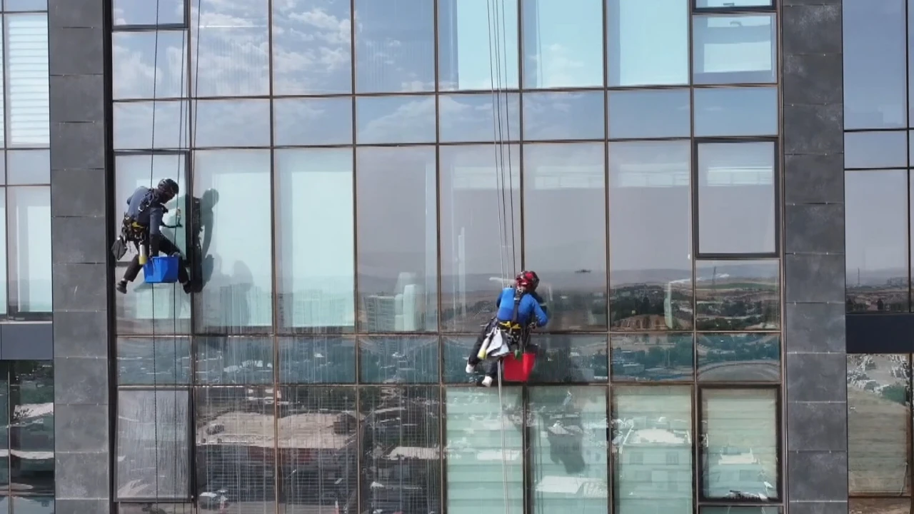 Gelen talepler üzerine firmanın yönlendirmesiyle İstanbul başta olmak üzere Ankara, İzmir, Antalya ve Diyarbakır gibi Türkiye'nin farklı illerine giden 2 arkadaş, zorlu meslekler arasında yer alan dış cephe cam temizliği yaparak geçimini sağlıyor.