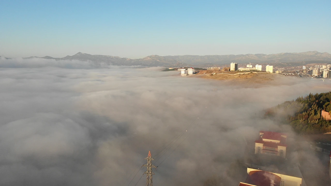 Kahramanmaraş'ta etkili olan sis, görüş mesafesini yer yer 15 metreye kadar düşürdü.