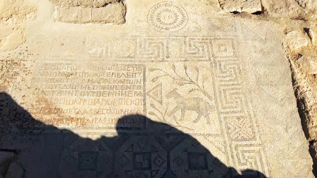 Siyah, kırmızı ve beyaz küçük mozaik taşlarından yapılan tabanda bitkisel motiflerin, hayvan figürlerinin ve geometrik unsurların yer aldığını dile getiren Kozbe, şöyle konuştu: "İlk incelemelere göre ya bir kilisenin ya bir şapelin (küçük kilise) veya martyrium dediğimiz bir şehitlik anıtının zemini olmalı. Yazıt, Bizans döneminde tarihlendirilen bir epigrafik formül çerçevesinde yazılmış. Yazıtta 'Kont Anaskas ve ailesini korumak adına' kimin yaptırdığını, ailenin ismini anlıyoruz. Bölgenin Başpiskoposu Küros'un bu alanın mekanın Başrahibi Elyas'ın veya Türkçe karşılığı İlyas'ın ve kiliselerde başokuyucu rütbesinde olan rahiplerin yardımcısı olan Diakos diye bir rütbe var, o Rabulus isimli bir şahsın zamanında yapılmış. Bu şahıs isimlerini, bu unvanları değerlendirdiğimizde anlıyoruz ki MS 460-495 yılları arasında bir süreç çıkıyor karşımıza. Bu da nereden baksanız 1500 yıllık Grekçe yazıtlı bir taban mozaiği olduğunu bize göstermekte."