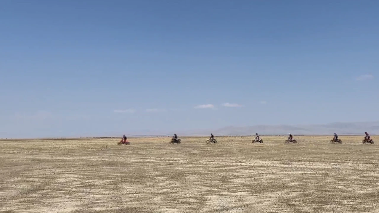 Konya'da motosiklet sporcuları, iklim değişikliği ve kuraklıktan kuruyan Akşehir Gölü'ne dikkati çekmek için çorak araziye dönen yerde sürüş yaptı. Aralarında enduroda dereceler elde etmiş sporcuların da yer aldığı 10 motosikletli, çevresel afetlere dikkati çekmek için 350 kilometrekare alana sahip, fıkralara konu olan Nasreddin Hoca'nın Akşehir Gölü'nde buluştu.