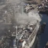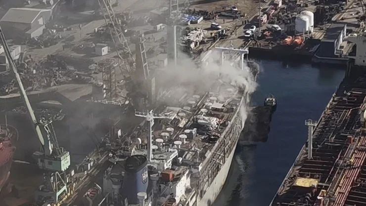 Tuzla'da tersanedeki gemide çıkan yangına itfaiye ekipleri müdahale ediyor.
