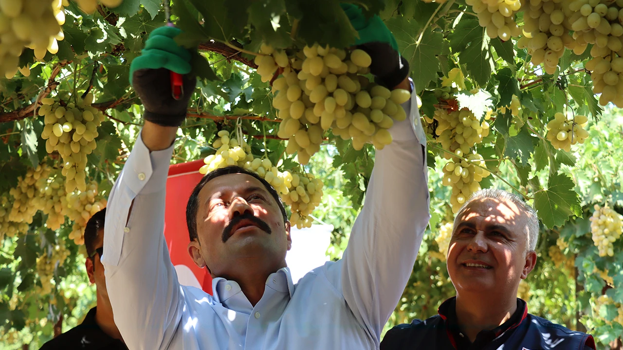 Etkinliğe katılan Vali Mustafa Masatlı, üzüm salkımlarını koparıp tüm üreticilere bereketli bir yıl geçirmelerini temenni etti.
