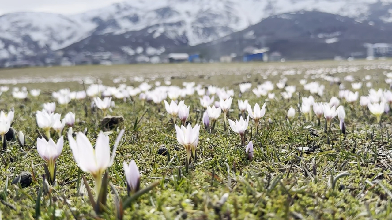 Muş'ta havanın ısınmaya başlamasıyla Donatım köyü çevresinde çiçek açmaya başlayan çiğdemler, güzel görüntüler oluşturdu.