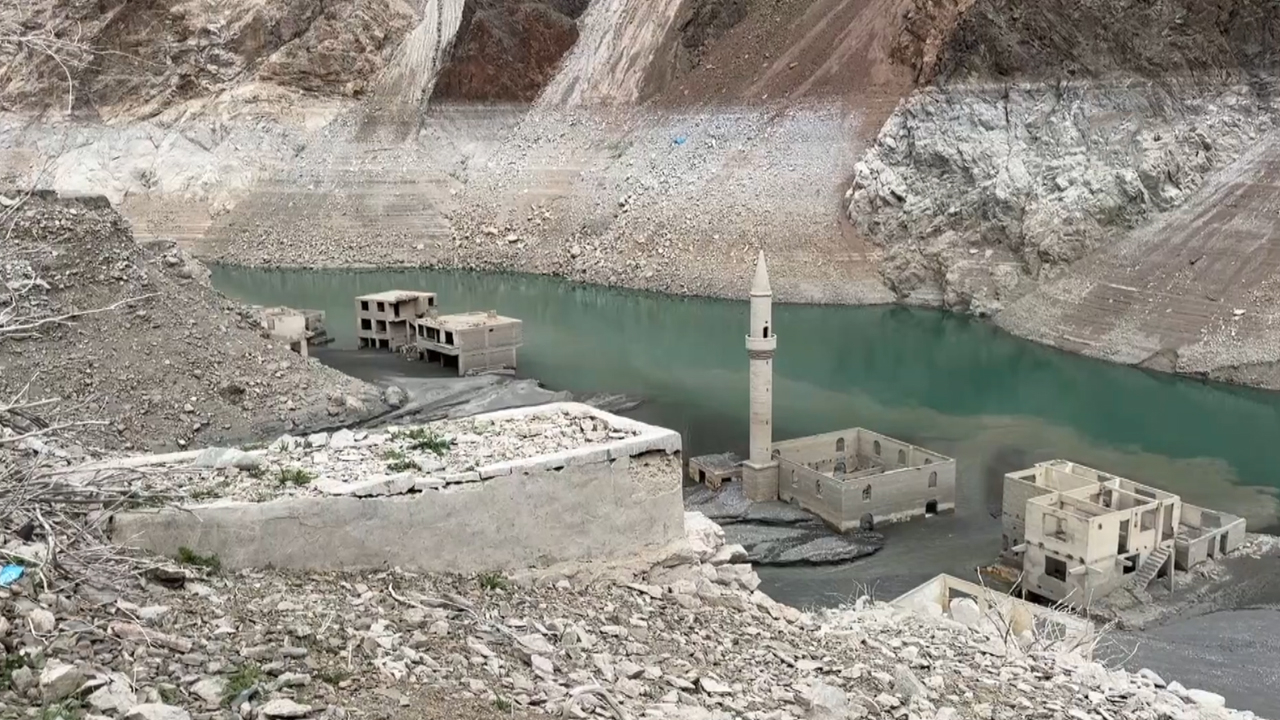 Su seviyesinin azalmasının ardından 2010'da boşaltılan Narlık köyündeki ev, cami ve bir dönem zeytinyağı üretiminde kullanılan fabrika gibi yapılar yeniden ortaya çıktı.